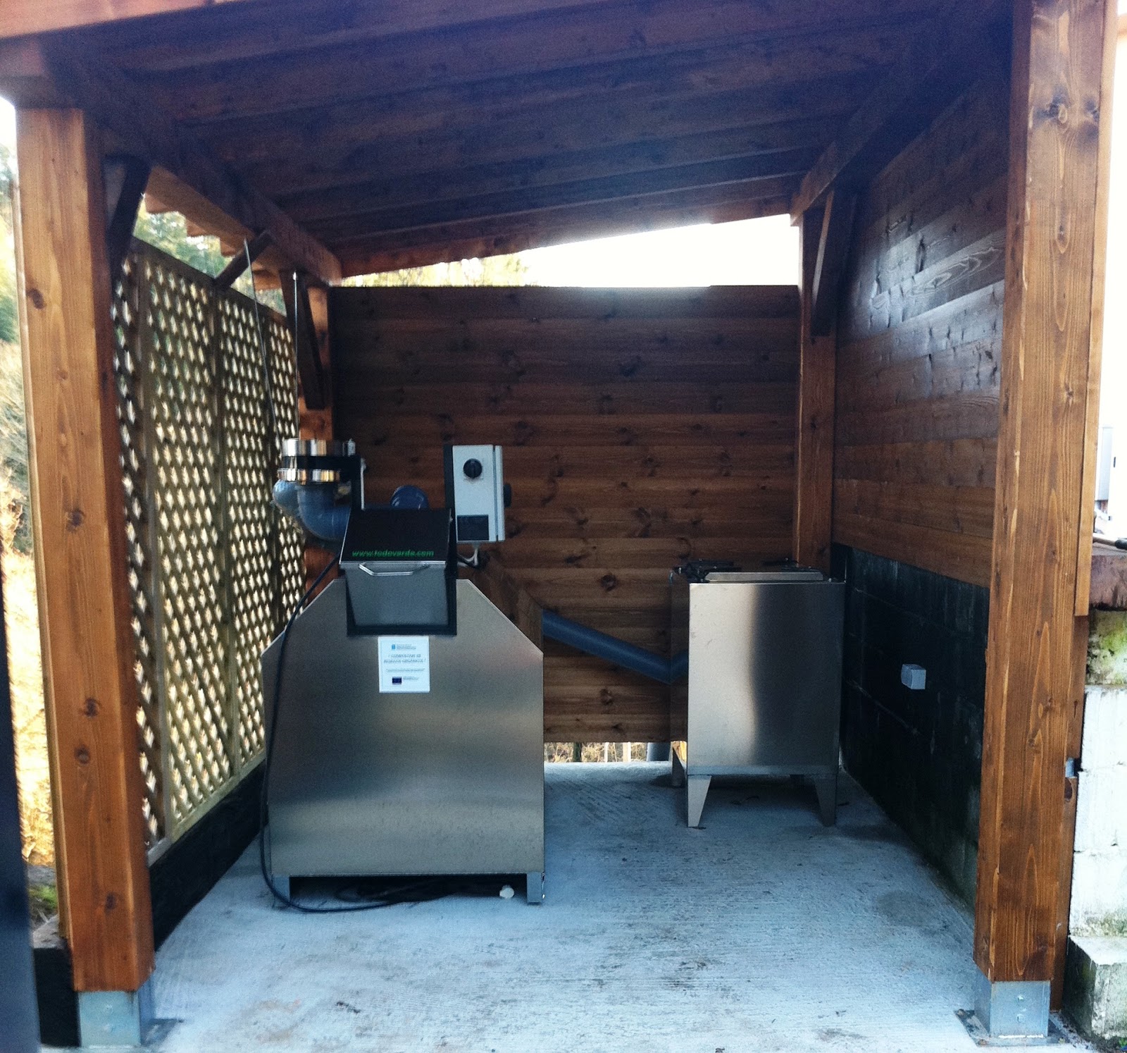 The composter and biofilter are installed in an unheated wooden shelter close to the hotel.