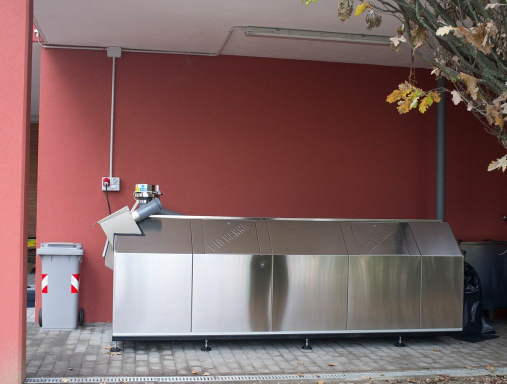 The composter has been installed at a food production centre operating within the spaces of the kindergarten’s canteen that produces meals for the kindergarten and primary school in the town, plus meals for elderly home care services and facilities operated by the local health institution.