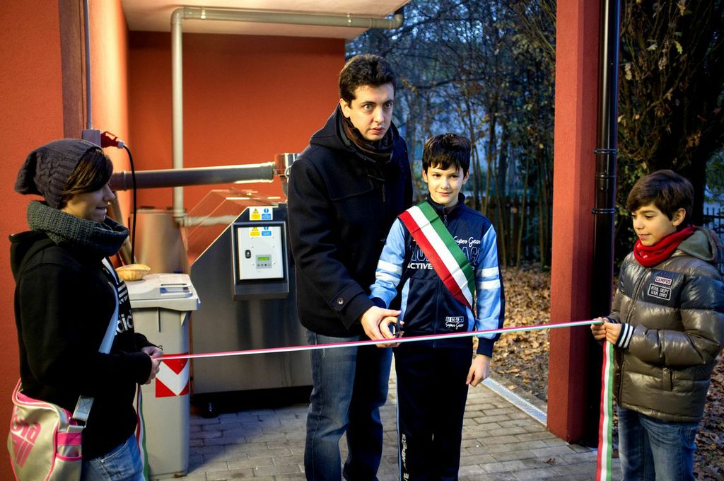 Saturday, November 24, 2012 a Big Hanna Composter model T120 was inaugurated and immediately after put into operation at a school’s canteen in the town of Pieve di Cento, a town with about 6,000 inhabitants, located in North Italy.